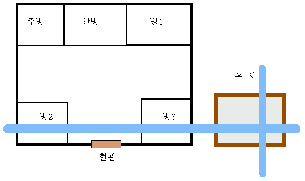 그리하여 탐사를 해본 결과 방2와 3으로는 큰 수맥이 한개 지나