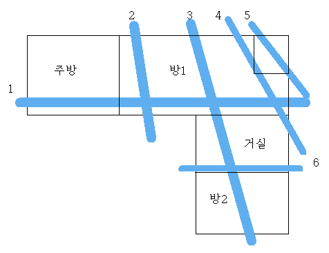 매우 곤란한 상태이지만 방1의 수맥2와 3사이공간, 3과 4의
